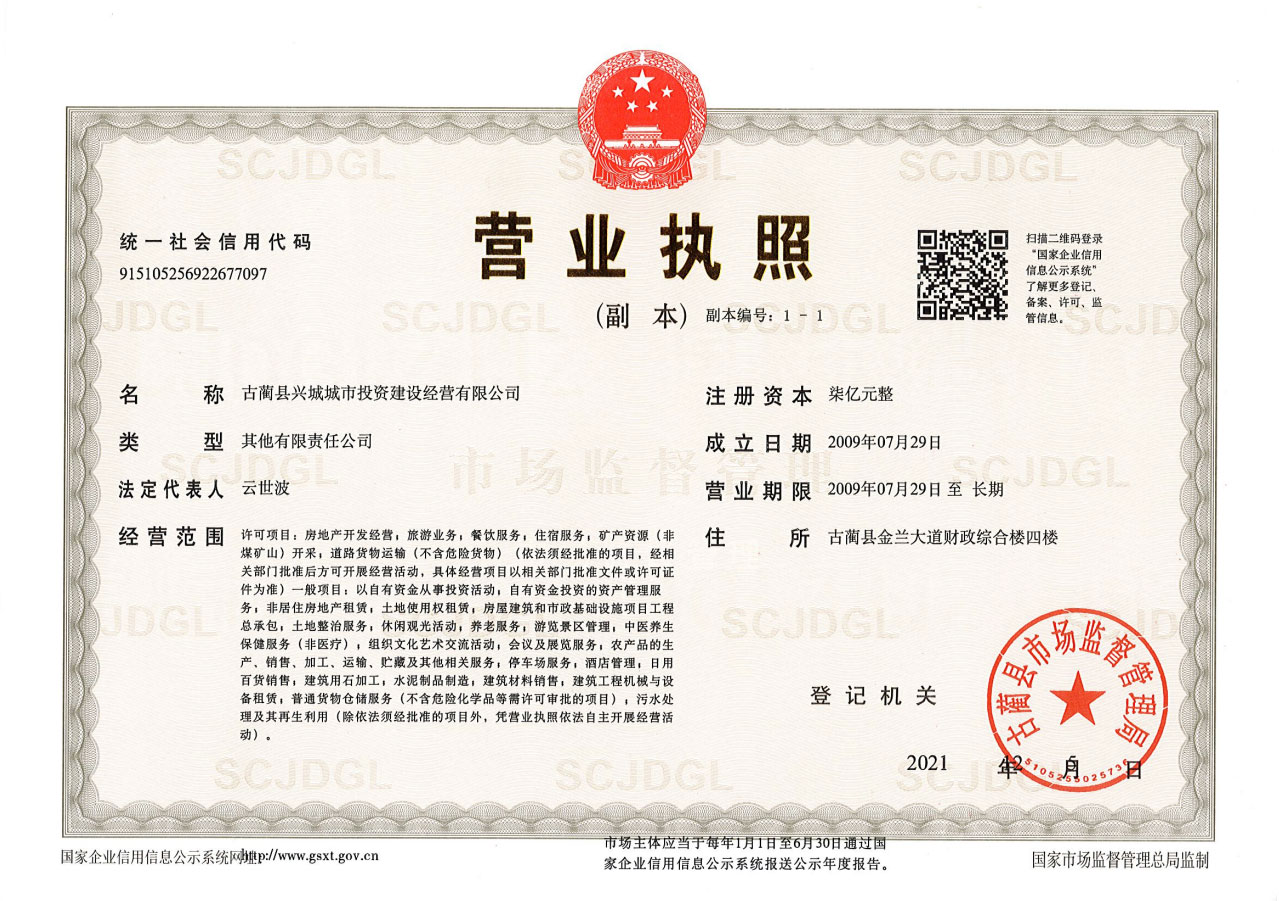 古藺縣興城城市投資建設(shè)經(jīng)營(yíng)有限公司成立于2009年7月,注冊(cè)資本5.8億元,是古藺縣委、縣政府為加快城市基礎(chǔ)設(shè)施建設(shè)和新城開(kāi)發(fā),充分發(fā)揮國(guó)有資產(chǎn)運(yùn)營(yíng)效益,同意由古藺縣國(guó)有資產(chǎn)經(jīng)營(yíng)有限責(zé)任公司發(fā)起成立的國(guó)有股份有限責(zé)任公司。公司設(shè)股東會(huì),股東為古藺縣國(guó)有資產(chǎn)經(jīng)營(yíng)有限責(zé)任公司、中國(guó)農(nóng)發(fā)重點(diǎn)建設(shè)基金有限公司,股權(quán)比例分別為51.72%、48.28%。具備房地...